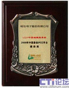 恒生及HSIPCC,已連獲多項(xiàng)殊榮: 2008年中國(guó)最佳呼叫中心“金耳嘜大獎(jiǎng)”之“2008中國(guó)最佳呼叫中心年度技術(shù)產(chǎn)品獎(jiǎng)”;2008年度全球IP通信大獎(jiǎng)之“2008年中國(guó)最佳IP呼叫中心提供商”、VOIP中國(guó)網(wǎng)之“2008年中國(guó)最佳IPCC平臺(tái)提供商”、 中國(guó)惟一國(guó)家級(jí)呼叫中心行業(yè)協(xié)會(huì)CNCCA 之“2007年度中國(guó)最佳呼叫中心年度技術(shù)產(chǎn)品”獎(jiǎng)等。