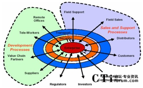 不同公司,生辰八字不同,發(fā)家史不同,決定了企業(yè)利益戰(zhàn)略點(diǎn)的不同,對統(tǒng)一通信的市場切入點(diǎn)和定位目標(biāo)就存在一些差異。軟件商采用以桌面軟件為基礎(chǔ),從上往下滲透的策略,設(shè)備商采用從基礎(chǔ)架構(gòu)出發(fā),從下往上突破的策略,但對統(tǒng)一通信的基本認(rèn)識可統(tǒng)歸為:以用戶為中心,實(shí)現(xiàn)跨時空的無限溝通。這里拋棄了網(wǎng)絡(luò)、終端、融合、平臺等技術(shù)層面的東西,而是完全從業(yè)務(wù)層面迎合了企業(yè)客戶的基本需求,企業(yè)聽到了自然心動!耙赂幌刃蘼贰,企業(yè)要發(fā)展,就必須先修好這條通信大道。從中,我們也可看出統(tǒng)一通信不是一種技術(shù),也不是一項應(yīng)用,而是一種需求、一種企業(yè)對網(wǎng)絡(luò)、通信技術(shù)成熟發(fā)展之后的需求滿足的期望。此外,通過對這些主要廠家的UC解決方案進(jìn)行分析,也可以發(fā)現(xiàn),無論大家的口號怎樣,PPT里的網(wǎng)絡(luò)架構(gòu)如何多變,卻一致地采用SIP協(xié)議進(jìn)行會話控制,用IP協(xié)議進(jìn)行數(shù)據(jù)傳輸,通過應(yīng)用服務(wù)器(或類似網(wǎng)元)提供各種統(tǒng)一通信功能。
