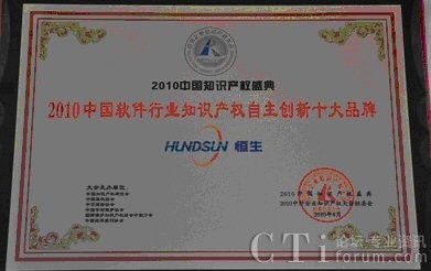 CTI論壇(ctiforum)5月7日消息(記者 楊佳林):4月25-26日,在北京人民大會堂舉辦的“2010中外知識產(chǎn)權(quán)大會”上,恒生電子股份有限公司憑借其自主研發(fā)并具有自主知識產(chǎn)權(quán)的HSIPCC產(chǎn)品榮獲“中國軟件行業(yè)知識產(chǎn)權(quán)自主創(chuàng)新十大品牌”。