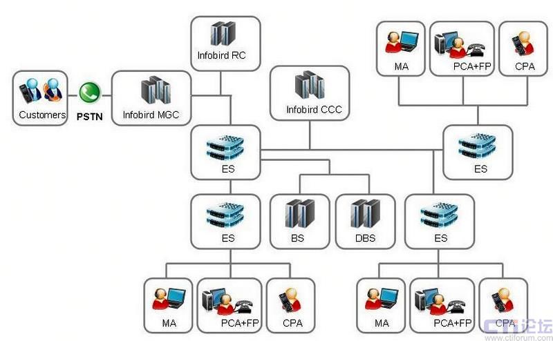 訊鳥于2007年初開始建設“啟通寶”呼叫中心平臺。該平臺的主體架構(gòu)由控制中心和媒體網(wǎng)關(guān)組成,其中在北京建設的控制中心類似于系統(tǒng)的“主大腦”,在上海、廣州等其他核心城市建設第二級的控制中心,類似于系統(tǒng)的“從大腦”?刂浦行牡墓δ苁枪芾砗涂刂疲c企業(yè)客戶相連接。媒體網(wǎng)關(guān)類似于系統(tǒng)的“手腳”,其功能是采取行動,進行PSTN和IP網(wǎng)語音的轉(zhuǎn)換等處理。另外,各控制中心負責所屬區(qū)域的業(yè)務,同時互為備份。比如,北京的控制中心平時負責華北的業(yè)務,上海負責華東的業(yè)務,深圳負責華南的業(yè)務,一旦某一分中心發(fā)生故障或呼叫量超過額定處理能力時,異地分中心便能接管或分擔該分中心的業(yè)務。