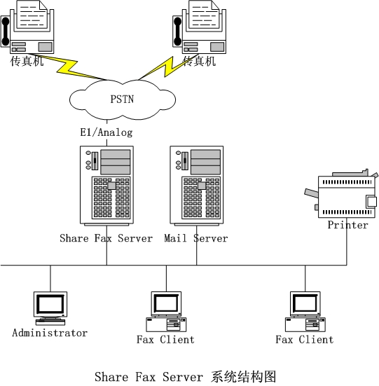 - 整個公司只需配備一個FAX Server,任何聯(lián)網(wǎng)的用戶都可通過這個設(shè)備收發(fā)傳真。