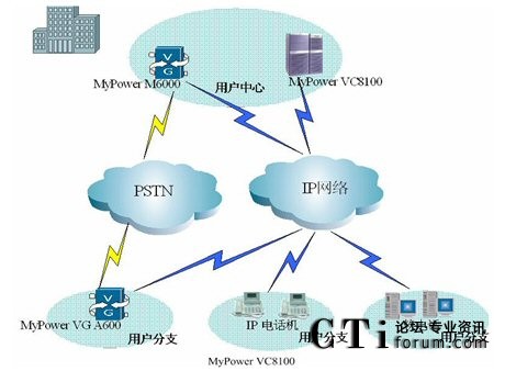 在用戶中心部署MyPower VC8100 IP通信服務(wù)器,同時部署MyPower M6000媒體網(wǎng)關(guān),在用戶分支機構(gòu)部署邁普公司小型媒體網(wǎng)關(guān)、IP電話機及軟電話,構(gòu)建以SIP協(xié)議為基礎(chǔ)的高擴展性VOIP協(xié)同通信平臺。