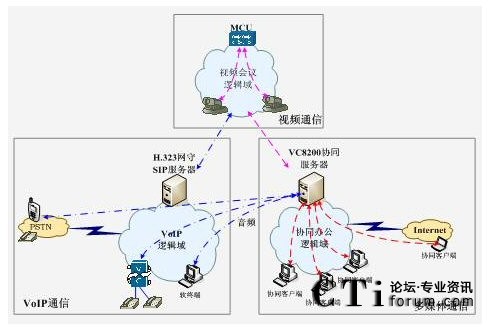 強大的系統(tǒng)融合能力:可以與傳統(tǒng)H.323的電視電話會議系統(tǒng)互通,以較低的成本把電視電話會議的音視頻延伸至基層;還可以與傳統(tǒng)的IP電話網(wǎng)融合,使用戶通過PSTN電話也能訪問協(xié)同服務(wù)器,隨時隨地實現(xiàn)音頻參加會議。