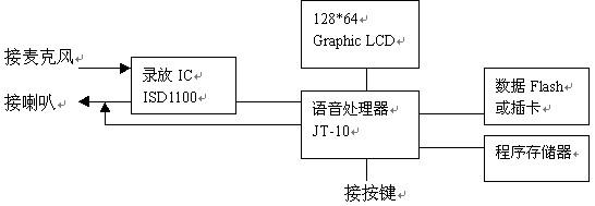由語音處理器+Flash存儲器(插卡)+10秒錄放IC組成。