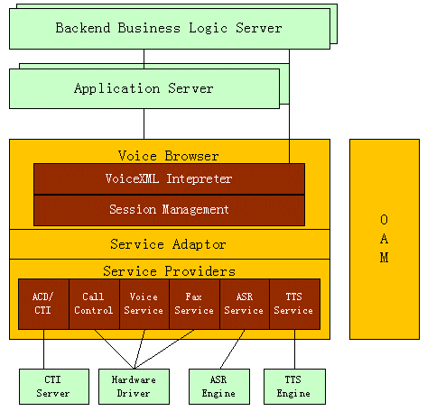 o 功能豐富:支持VoiceXML 2.0的全部現(xiàn)有功能,支持主流PBX、CTI中間件、語音呼入\出、傳真等功能,支持語音識別(ASR)和語音合成技術(shù)(TTS)。