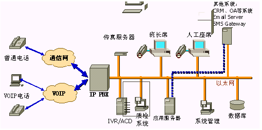 IP PBX系統(tǒng)代替?zhèn)鹘y(tǒng)PBX交換機(jī)系統(tǒng),實際上是一個SIP或H.323交換機(jī),內(nèi)部分機(jī)采用純IP電話,提供呼叫路由、話務(wù)員分組管理、呼叫控制等功能,支持市場上主流IP