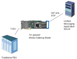 大量的下一代 UM 平臺都被設(shè)計為使用 SIP 作為應(yīng)用和外部世界之間唯一的接口。 將關(guān)注的重點集中于 SIP 可以為開發(fā)人員帶來許多好處,但會為 VAR/集成商帶來將 UM 應(yīng)用與現(xiàn)有 PBX 設(shè)備進(jìn)行接口方面的挑戰(zhàn)。 解決的方法是使用媒體網(wǎng)關(guān)來提供PBX 上 TDM 接口和 UM 應(yīng)用的 SIP 接口之間的轉(zhuǎn)換。