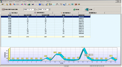 | 按時間統(tǒng)計 | 按照時間對來電以及計費點進行統(tǒng)計,并寫從下端的立體折線圖中看到所選的日期內各個時間段的呼叫分布數(shù)。 |