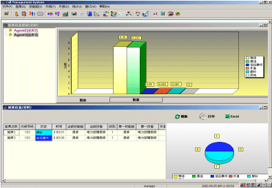 座席狀態(tài)實時監(jiān)控圖形顯示;線路狀態(tài)實時監(jiān)控圖形顯示;按時間以及不同條件進行查詢的完善的歷史數(shù)據(jù)分類分析及統(tǒng)計;以統(tǒng)計報表形式提供中心各狀態(tài)及業(yè)績信息作為考評依據(jù);按Excel方式輸出報表,提供進一步編輯功能。其所生成的上百張報表,可以協(xié)助企業(yè)有效管理資源,檢查成本,預測改善現(xiàn)有運作的潛在需求。