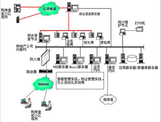 。。用戶利用電話、傳真、WEB、手機短信息、電子郵件等撥打某一特服號碼(如95xxx)進入房地產(chǎn)多媒體客戶服務(wù)中心系統(tǒng),本系統(tǒng)依托房地產(chǎn)企業(yè)各類業(yè)務(wù)技術(shù)支持系統(tǒng),通過人工受理或自動語音服務(wù)等方式為各類客戶提供購房和物業(yè)管理服務(wù);形成了對外服務(wù)于客戶,對內(nèi)管理、分析、決策系統(tǒng)相結(jié)合的呼叫中心。