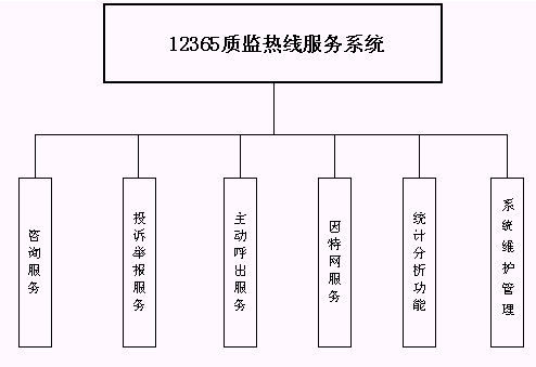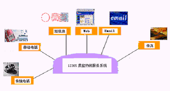 人民群眾利用電話、傳真、手機(jī)、電子郵件、因特網(wǎng)、短消息等撥打國家質(zhì)量技術(shù)監(jiān)督局規(guī)定的統(tǒng)一特服號碼(12365)進(jìn)入12365質(zhì)監(jiān)熱線服務(wù)系統(tǒng),本系統(tǒng)依托質(zhì)量技術(shù)監(jiān)督局各類業(yè)務(wù)技術(shù)支持系統(tǒng)和網(wǎng)絡(luò)系統(tǒng),通過人工受理或自動(dòng)語音服務(wù)等方式全天24小時(shí)不間斷地為客戶提供各種服務(wù)。