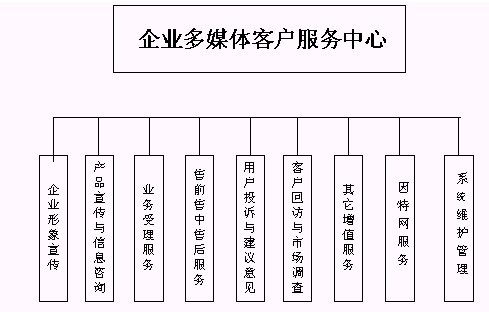 網(wǎng)上服務(wù)系統(tǒng):與INTENET結(jié)合,接受來自網(wǎng)上的呼叫請(qǐng)求,提高服務(wù)和營(yíng)銷的質(zhì)量和效率。
