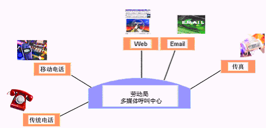 勞動局多媒體呼叫中心系統(tǒng)支持的通訊方式包括:電話、傳真、手機(jī)、電子郵件、因特網(wǎng)服務(wù)、短消息等多種通訊媒介。