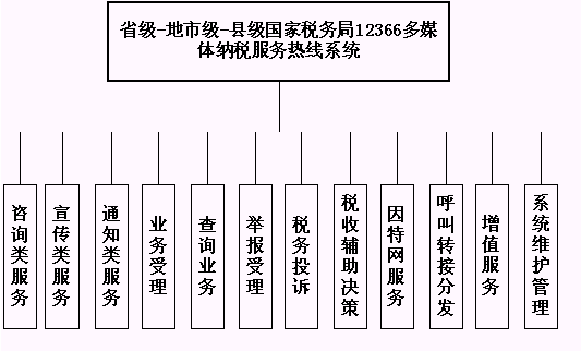 省級(jí)國(guó)家稅務(wù)局12366多媒體納稅服務(wù)熱線系統(tǒng)的業(yè)務(wù)功能結(jié)構(gòu)如下圖所示: