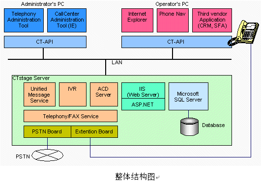 隨著經營環(huán)境和企業(yè)環(huán)境的日益激化,作為新時代的信息策略,計算機電話集成(CTI)也由于投資小效益大而倍受注目。沖電氣公司的CTstage實現最先端的多媒體通信的UnPBX(在服務器中加插電話板卡,以單臺計算機實現PBX功能的系統(tǒng))型的開放式CTI系統(tǒng)。在一臺PC服務器上實現IVR和ACD功能、內線電話控制、ACD監(jiān)視器等呼叫中心所需要的功能,成為真正意義上的UnPBX呼叫中心。先進的CTI的解決方案將作為企業(yè)的經營策略,迅速提高適應市場的能力。