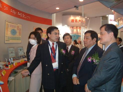 中國郵電器材集團(tuán)公司總裁楊忠良和上海市通信管理局局長張健作介紹。