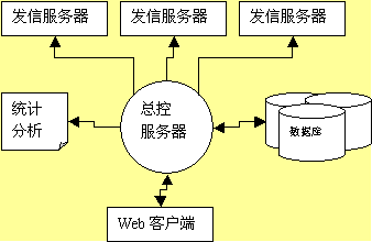 1. 以總控服務(wù)器為控制中心,控制一臺或多臺郵件發(fā)送服務(wù)器,每臺發(fā)送服務(wù)器管理一個或多個郵件隊(duì)列?刂浦行目刂凄]件列表,任務(wù)列表、作業(yè)列表,并與業(yè)務(wù)數(shù)據(jù)庫通過數(shù)據(jù)庫接口連接,根據(jù)條件提取數(shù)據(jù),更新郵件發(fā)送列表,生成統(tǒng)計(jì)分析報(bào)告。