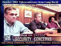 遠(yuǎn)程安全會(huì)議,布什總統(tǒng)手持TANDBERG的遙控器親自進(jìn)行操作。