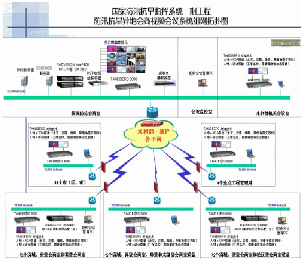 他們調(diào)查了當時水利部及下屬機構(gòu)的網(wǎng)絡(luò)現(xiàn)狀:即將安裝的國家防汛抗旱指揮異地會商視頻會議系統(tǒng)會運行在"國家防汛抗旱指揮系統(tǒng)"一期工程骨干網(wǎng)上,水利部網(wǎng)絡(luò)中心到7
