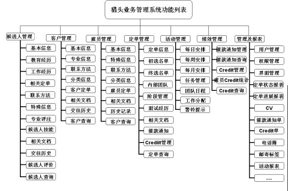 圖1獵頭業(yè)務(wù)管理系統(tǒng)功能框圖