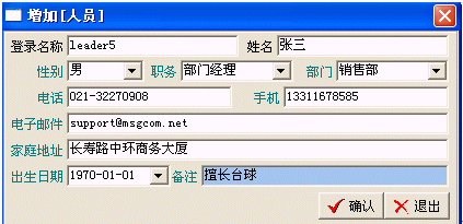 人員管理主要是對(duì)本系統(tǒng)的使用者進(jìn)行管理(增加/修改/刪除/查詢),包括使用者所在的部門、職務(wù)等