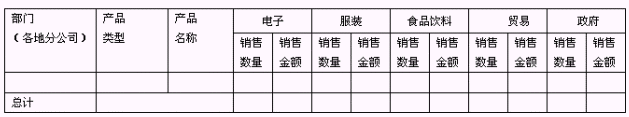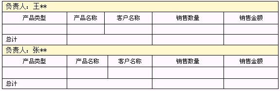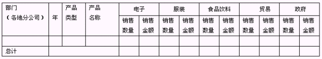 作為分公司銷售經(jīng)理,需要查看分公司每個銷售員的銷量統(tǒng)計(jì),便于向銷售總監(jiān)做好匯報(bào),需要同時(shí)知道不同產(chǎn)品類型的銷量?梢酝ㄟ^分組報(bào)表來實(shí)現(xiàn),如下圖: