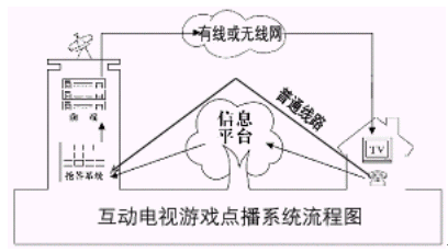 從互動游戲點播系統(tǒng)流程圖可以看出,互動游戲點播系統(tǒng)的信號輸出是單向廣播式的,它不需電視臺對線路及前端進行改造。但上行信號需要借助市話網(wǎng),利用市話網(wǎng)進行計費、收費,系統(tǒng)的上行信號由觀眾的電話機通過公用電話網(wǎng)傳送到游戲控制器中,所以和電信的接口可以采取兩種方式,一是和信息臺的合作;二是和電話局的合作,相應(yīng)的信號流程和收費方式(廣告費除外)也不一樣。也就是說西安視達科技有限公司的互動游戲系統(tǒng),可以與不同城域的電信局(包括各信息臺與各級電話局)聯(lián)辦節(jié)目,開展電信增值業(yè)務(wù);也可以由電視臺自行收費,以火爆的互動游戲節(jié)目帶起火爆的廣告市場,創(chuàng)造更大的經(jīng)濟效益。