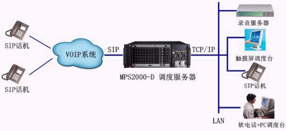 由于MPS2000-D調(diào)度系統(tǒng)本身具有具大的軟交換功能,所以調(diào)度系統(tǒng)既可以與企業(yè)已建成的VOIP系統(tǒng)相連,對(duì)VOIP管理的終端進(jìn)行調(diào)度,又可以對(duì)自己管理的用戶進(jìn)行調(diào)度。系統(tǒng)豐富的資源使其除了具有基本調(diào)度功能外,還具有強(qiáng)大的會(huì)議功能,可以實(shí)現(xiàn)從3方到幾十、幾百方的全交互會(huì)議;還可對(duì)調(diào)度過(guò)程自動(dòng)進(jìn)行錄音備份;使每個(gè)分機(jī)都具有語(yǔ)音信箱功能;TTS資源的引入,可將文本文件變成語(yǔ)音,使所有調(diào)度成員可以聽(tīng)文件;ASR資源的引入,改變了以往通過(guò)按鍵撥號(hào)進(jìn)行調(diào)度的形式,可直接通過(guò)語(yǔ)音呼叫進(jìn)行調(diào)度,使調(diào)度變得更方便、更快捷。