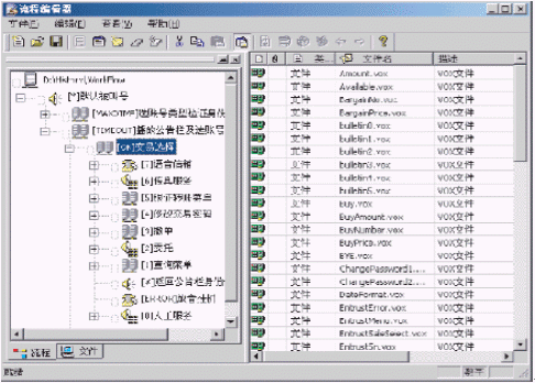 ·采用Windows Explorer風格的樹形節(jié)點編輯呼叫流程,同時可通過查看屬性查看每個業(yè)務節(jié)點上下級之間的關系。使用戶對IVR的整個呼叫流程,以及各個節(jié)點之間的關系一目了然。