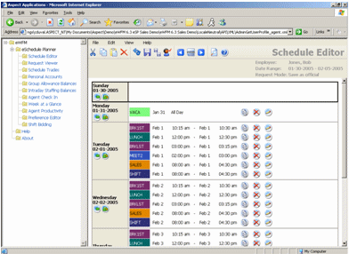 - 員工可以通過網(wǎng)絡(luò)瀏覽器、電話或者手機申請工作班次。所有申請按照收到的時間順序排隊并得到處理。系統(tǒng)根據(jù)呼叫中心經(jīng)理制定的規(guī)則對坐席提交的申請進行確認或者拒絕。