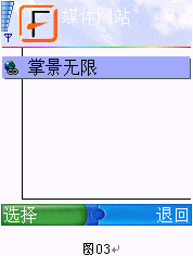 4.現(xiàn)在此軟件支持的媒體網(wǎng)站只有"掌景無(wú)限",估計(jì)以后隨著肥 6 用戶(hù)及在線(xiàn)視頻播放功能的普及,類(lèi)似的網(wǎng)站會(huì)更多,打開(kāi)"掌景無(wú)限",則系統(tǒng)會(huì)提示你所選擇的連接接入點(diǎn),