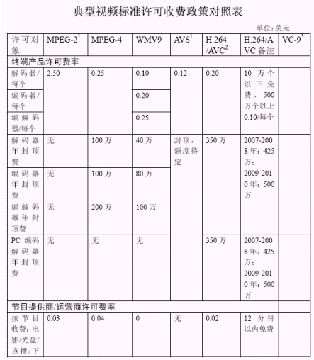 3GPP移動(dòng)視頻編解碼專利許可狀況