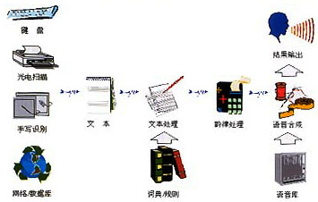 -----按照人類言語功能的不同層次,語言合成也可分成三個層次,它們是:(1)從文字到語音的合成(Text-To-Speech);(2)從概念到語音的合成(Concept-To-Speech);(3)從意向到語音的合成(Intention-To-Speech)。這三個層次反映了人類大腦中形成說話內(nèi)容的不同過程,涉及人類大腦的高級神經(jīng)活動。不難想象,即使是按規(guī)則的文字到語音合成(文語合成)也已經(jīng)是相當困難的任務(wù)。為了合成出高質(zhì)量的語言,除了依賴于各種規(guī)則,包括語義學(xué)規(guī)則、詞匯規(guī)則、語音學(xué)規(guī)則外,還必須對文字的內(nèi)容有很好的理解,這將涉及自然語言理解的問題。從這一點講,文語轉(zhuǎn)換系統(tǒng)實際上也可看作一個人工智能系統(tǒng)。圖1顯示了一個完整的文語轉(zhuǎn)換系統(tǒng)示意圖。文語轉(zhuǎn)換過程是先將文字序列轉(zhuǎn)換成音韻序列,再由語音合成器生成語音波形。其中第一步涉及語言學(xué)處理,例如分詞、字音轉(zhuǎn)換等,以及一整套有效的韻律控制規(guī)則;第二步需要先進的語音合成技術(shù),能按要求實時合成出高質(zhì)量的語音流。因此一般說來,文語合成系統(tǒng)都需要一套復(fù)雜的文字序列到音素序列的轉(zhuǎn)換程序,也就是說,文語轉(zhuǎn)換系統(tǒng)不僅要應(yīng)用數(shù)字信號處理技術(shù),而且必須有大量的語言學(xué)知識的支持。當然其中語音合成終究還是最基本的部分,它相當于“人工嘴巴”,任何語言合成系統(tǒng)包括文語轉(zhuǎn)換系統(tǒng),都離不開語音合成器。