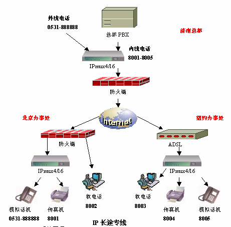IP長途專線系統(tǒng),完全針對(duì)政府、企業(yè)等的駐外辦事機(jī)構(gòu)與總部之間的密切聯(lián)系而設(shè)計(jì),使辦事處輕松擁有來自總部的長途電話專線,令溝通更加迅捷,而且完全免除長途話費(fèi)的困擾,安裝和使用都極其簡(jiǎn)單,無需對(duì)原有電話設(shè)備進(jìn)行任何改造。