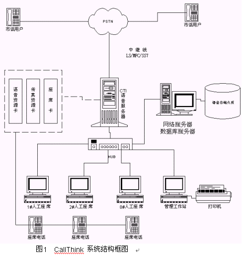 正是基于以上考慮,北京強(qiáng)訊公司根據(jù)多年來(lái)在企業(yè)級(jí)辦公自動(dòng)化通信領(lǐng)域積累的經(jīng)驗(yàn),推出了"CallThink 企業(yè)級(jí)呼叫中心系統(tǒng)",該系統(tǒng)充分考察大多數(shù)企業(yè)的實(shí)際情況,本著合理利用現(xiàn)有設(shè)備,以最小的投入獲取最大的效益的原則,包含了自動(dòng)呼叫分配(ACD)、交互式語(yǔ)音應(yīng)答(IVR)、計(jì)算機(jī)語(yǔ)音集成(CTI)、客戶(hù)關(guān)系管理(CRM)等業(yè)務(wù)。