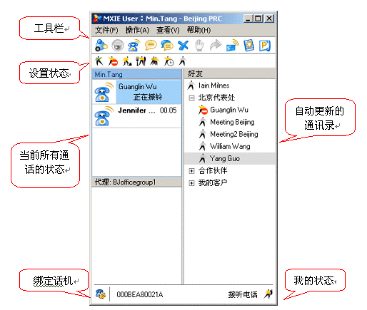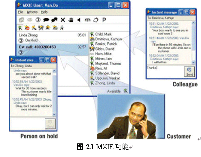 MXIE是一個(gè)用戶端UCI(Unified communications Interface,統(tǒng)一通信界面)軟件。通過它可以實(shí)時(shí)設(shè)置或查看工作狀態(tài);使用自動(dòng)更新的通訊錄,無需撥號進(jìn)行呼叫;發(fā)送即時(shí)消息(IM:Instant Message,軟件和電話互發(fā));發(fā)送/收聽語音郵件;群發(fā)/群收傳真;設(shè)置個(gè)性化的來電處理規(guī)則等。