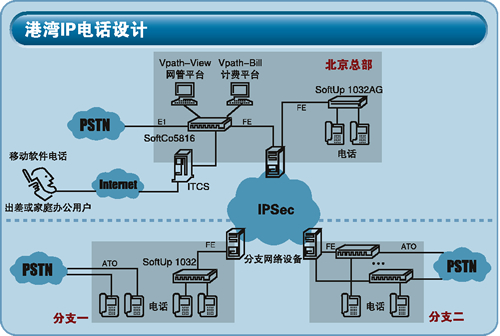 對于分支機構(gòu),港灣公司的解決方案超出了我們的預(yù)期。他們給予了兩套方案,第一種方案和我們標(biāo)書中的基本要求一樣,提供了內(nèi)部通信的單獨IP話機,同時保留本地直線電話。第二種方案中則全部遷移到IP電話平臺中,依賴SoftUp201/202