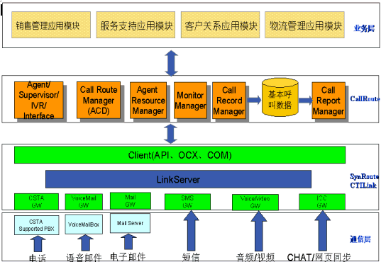 。。CallRoute平臺是一個基于CSTA標準、支持分布互連的呼叫中心平臺。商路通呼叫中心平臺全套產(chǎn)品包括多個服務部件,客戶端的接口部件(OCX、DLL)以及功能豐富應用工具。我們的軟件系統(tǒng)采用先進的軟件工程設計方法,整個系統(tǒng)的軟件結構體系遵循以下設計原則: