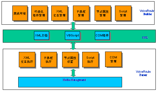 Browser \ Document \ 嵌入式語(yǔ)言的體系結(jié)構(gòu)實(shí)現(xiàn),為IVR、IFR和ADS應(yīng)用提供一個(gè)統(tǒng)一的環(huán)境。一個(gè)VoiceRoute應(yīng)用可看作由一系列包含輸入輸出樣式、工作流定義和嵌入式計(jì)算的XML文檔,頁(yè)面內(nèi)容按照客戶定義的業(yè)務(wù)流程用工作流組織,用戶的一次語(yǔ)音交互過(guò)程即是對(duì)特定服務(wù)內(nèi)容請(qǐng)求與應(yīng)答的過(guò)程。