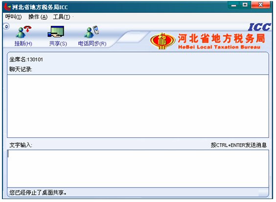 收到納稅人共享請(qǐng)求提示,如果坐席現(xiàn)在為全屏,收到納稅人共享請(qǐng)求,ICC界面將會(huì)自動(dòng)跳到全屏的前端,彈出共享框。如果坐席現(xiàn)在不是全屏,收到納稅人共享請(qǐng)求,任務(wù)欄里ICC對(duì)話框?qū)⒆詣?dòng)閃爍,彈出共享框。