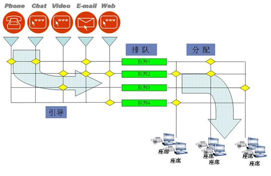 可運(yùn)營的第五代呼叫中心,商路通在ACD的處理方面,采用雙矩陣的ACD機(jī)制。形式如下: