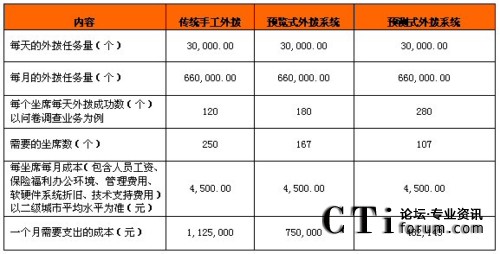 Hi-Dialer為不少呼叫中心企業(yè)帶來的前所未有的收益。我們可以進(jìn)行一個(gè)簡(jiǎn)單的實(shí)景測(cè)算,目前國(guó)內(nèi)典型的擁有預(yù)測(cè)式外呼的呼叫中心都有單純的呼入坐席,假設(shè)呼入坐席500席,預(yù)測(cè)式呼出坐席1000席,呼入和呼出坐席的呼叫中心系統(tǒng)分別獨(dú)立,如果是業(yè)務(wù)量飽和的狀態(tài)下,全部坐席是可以用的,但是在業(yè)務(wù)量不飽和的狀態(tài)下,想讓這1000坐席接聽呼入電話,卻辦不到。這就形成了一個(gè)巨大的漩渦,將企業(yè)的軟硬件成本、場(chǎng)地租金和人力資源無情的吞噬掉了。新的勞動(dòng)法又規(guī)定企業(yè)不得隨意裁人,那么這時(shí)候企業(yè)就會(huì)非常頭疼。這是一個(gè)典型的重復(fù)建設(shè)項(xiàng)目。