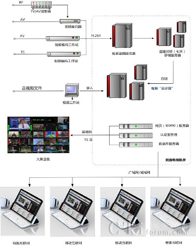 網(wǎng)絡(luò)廣播既有傳統(tǒng)廣播電視靈活生動的表現(xiàn)形式,又有互聯(lián)網(wǎng)按需獲取的交互性,如何組織、存儲、管理、發(fā)布信源,充分利用電視臺豐富的資源,提供個性化的服務(wù),是辦好電視媒體網(wǎng)站的關(guān)鍵。網(wǎng)絡(luò)與電視互利互惠、優(yōu)勢互補將是當前電視與網(wǎng)絡(luò)的最佳狀態(tài)。放眼世界和未來,可以預(yù)見:在全球邁向“信息時代”的今天,電視將與網(wǎng)絡(luò)在競爭中走向不斷融合、創(chuàng)新進而達到新的繁榮。目前開辦網(wǎng)絡(luò)電視臺是各級廣電單位最為行之有效的解決方案,并成功地應(yīng)用于實際。下文筆者主要將在構(gòu)建網(wǎng)絡(luò)電視臺時的高清TS流直播技術(shù)難題,以及實際應(yīng)用中的解決方案,與各位同行共享。
