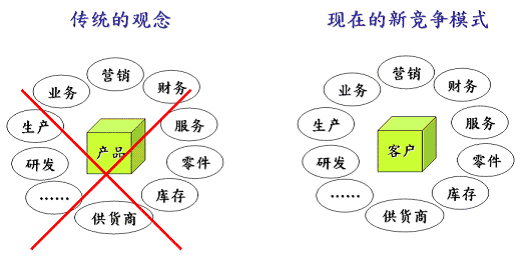 在CRM系統(tǒng)架構中,如何持續(xù)和客戶保持好關系、進而提高客滿意度是最主要目標之一,也是客戶關系管理架構的核心價值所在,F(xiàn)在企業(yè)的競爭模式已經(jīng)從以往以產(chǎn)品為中心的思考模式,轉變到以客戶為中心的思考模式。(如圖一)