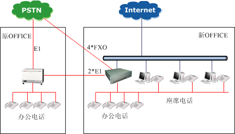 總部目前已有電話用戶交換機(jī)一臺(tái),滿足總部所有員工的電話需要,而分部需要新建電話網(wǎng)絡(luò),使之和總部能組網(wǎng),滿足短號(hào)互撥,不產(chǎn)生費(fèi)用的要求。