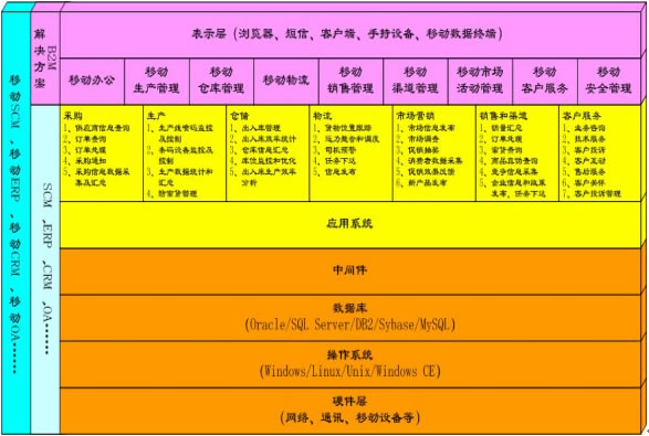 隨著移動(dòng)商務(wù)時(shí)代的到來(lái),電子商務(wù)時(shí)代的企業(yè)信息化系統(tǒng)(或者企業(yè)管理系統(tǒng)),包括SCM(供應(yīng)鏈管理)、ERP(企業(yè)資源規(guī)劃)、CRM(客戶關(guān)系管理)、OA(辦公自動(dòng)化)和財(cái)務(wù)系統(tǒng)等等將逐漸向Mobile-SCM(移動(dòng)供應(yīng)鏈管理)、Mobile-ERP(移動(dòng)企業(yè)資源規(guī)劃)、Mobile-CRM(移動(dòng)客戶關(guān)系管理)、Mobile-OA(移動(dòng)辦公)等演變,并隨著應(yīng)用的逐漸普及,給企業(yè)的生產(chǎn)經(jīng)營(yíng)流程帶來(lái)巨大而深刻的變化。