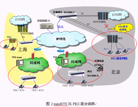 傳統(tǒng)的通信網(wǎng)絡(luò)很發(fā)達(dá),很多機(jī)構(gòu)都通過小型程控交換機(jī)(PBX)來組建小型的電話網(wǎng)。在我們做VOIP系統(tǒng)的規(guī)劃時(shí),就需要考慮新的VOIP系統(tǒng)和原有的PBX如何協(xié)同工作的問題。首先,我們還需要使用PBX,不能因?yàn)榻ㄔO(shè)新的系統(tǒng)就浪費(fèi)原有的投資。其次,大家都習(xí)慣了原來的PBX的使用方式,如4位內(nèi)部小號(hào),我們希望能夠不改變或盡量少改變用戶的使用習(xí)慣,這樣才能比較平滑的過渡到VOIP。MindSYS充分考慮了行業(yè)用戶的這種特點(diǎn),能夠與PBX聯(lián)合組網(wǎng),并且新的VOIP系統(tǒng)可以使用與原來PBX等長的小號(hào),對(duì)用戶來說新舊系統(tǒng)的使用習(xí)慣是沒有分別的,兩個(gè)系統(tǒng)可以互通。