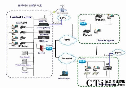 “服務(wù)中心網(wǎng)絡(luò)化”——充分利用IP話機(jī)的靈活移動(dòng)和免費(fèi)特點(diǎn),服務(wù)中心的人工坐席可以靈活設(shè)置;