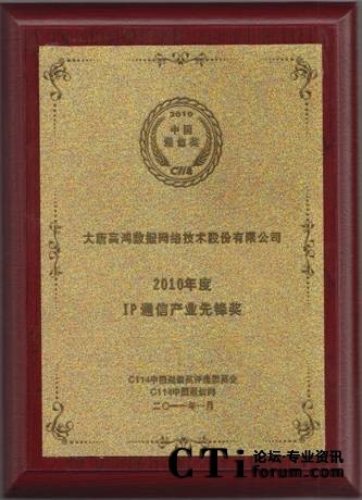在評選工作中,通過專家評選以及廣大網(wǎng)友投票選舉,高鴻股份數(shù)據(jù)網(wǎng)絡(luò)技術(shù)股份有限公司(以下簡稱“高鴻股份”)憑借自身雄厚實(shí)力和優(yōu)良服務(wù),在2010年的工作得到了大家充分的肯定,喜獲 “IP通信產(chǎn)業(yè)先鋒獎(jiǎng)”獎(jiǎng)項(xiàng)。