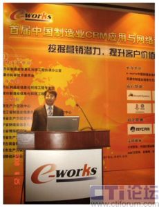 MyCRM于4月25日在天津參加了由e-works 主辦的主題為“挖掘營(yíng)銷潛力,提升客戶價(jià)值”的“首屆中國(guó)制造業(yè)CRM應(yīng)用與網(wǎng)絡(luò)營(yíng)銷年會(huì)”。國(guó)內(nèi)外優(yōu)秀知名CRM廠商MyCRM、微軟、賽捷、TurboCRM齊集本屆年會(huì)。并就中國(guó)制造業(yè)CRM應(yīng)用及圍繞中國(guó)制造企業(yè)如何進(jìn)行管理創(chuàng)新、營(yíng)銷創(chuàng)新和服務(wù)創(chuàng)新等方面進(jìn)行了演講。